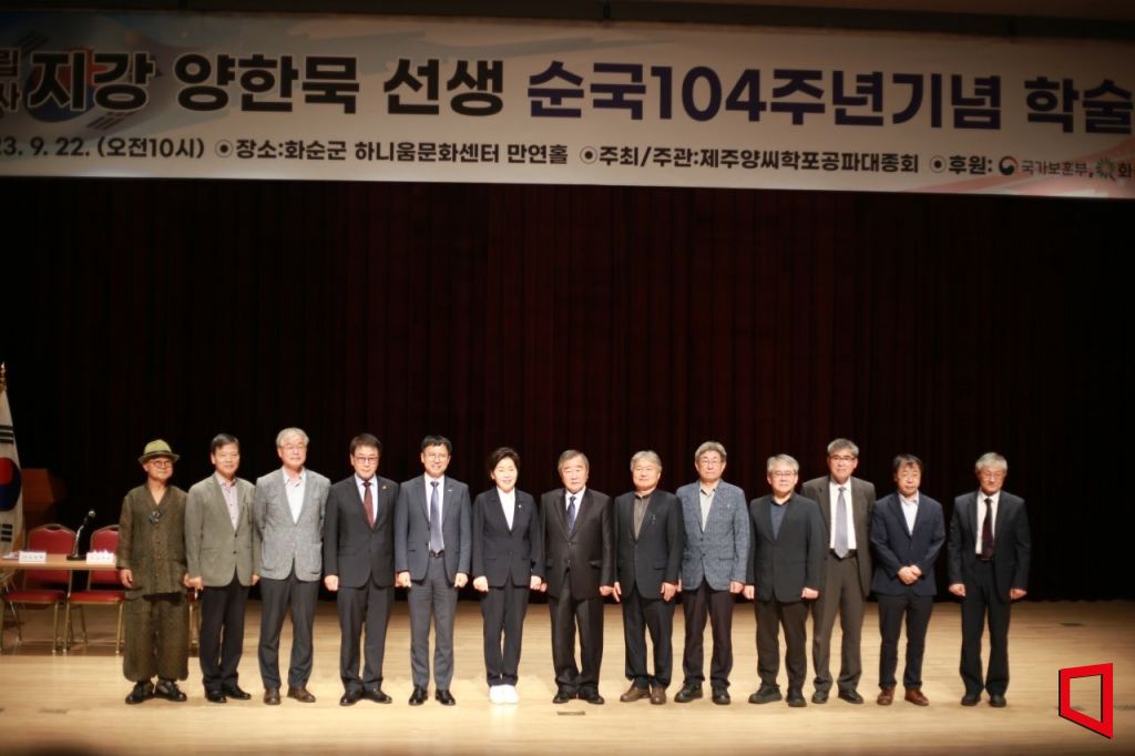 22일 제주양씨학포공파대종회에 따르면 이날 오전 10시 전남 화순 하니움문화센터 만연홀에서 '지강 양한묵 선생 순국 104주년기념 학술대회'를 개최했다고 밝혔다.