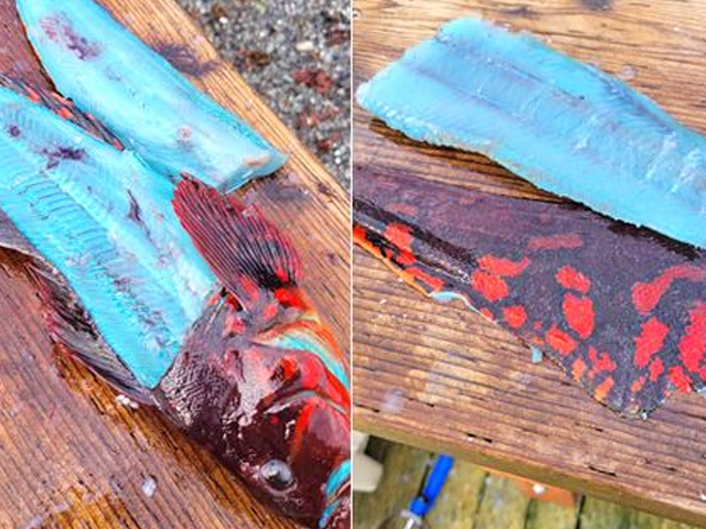 미국 알래스카에서 한 어부가 속살이 새파란 물고기를 잡아 화제다.