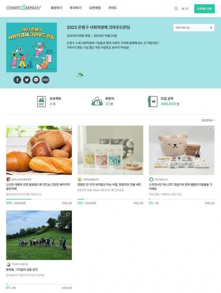 서울 은평구(구청장 김미경)가 오는 10월 24일까지 ‘2023 은평구 사회적경제 크라우드펀딩 전용관’을 운영한다.