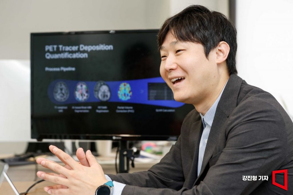 현재 치매 진단의 표준은 양전자 방출 단층촬영(PET)을 통해 Aβ 등이 얼마나 쌓였는지를 보는 방식이다. 뉴로핏은 기존에는 8시간이나 걸렸던 PET 영상 분석을 15분 이내에 끝낼 수 있는 '스케일(SCALE) PET'을 개발했다. 빈 대표는 "각기 다른 시점의 영상이기 때문에 각도가 조금만 달라도 다르게 나온다"며 "기존에는 사람이 일일이 수동으로 해야 했던 걸 AI 통해 자동화하고 초고속화했다"고 설명했다.