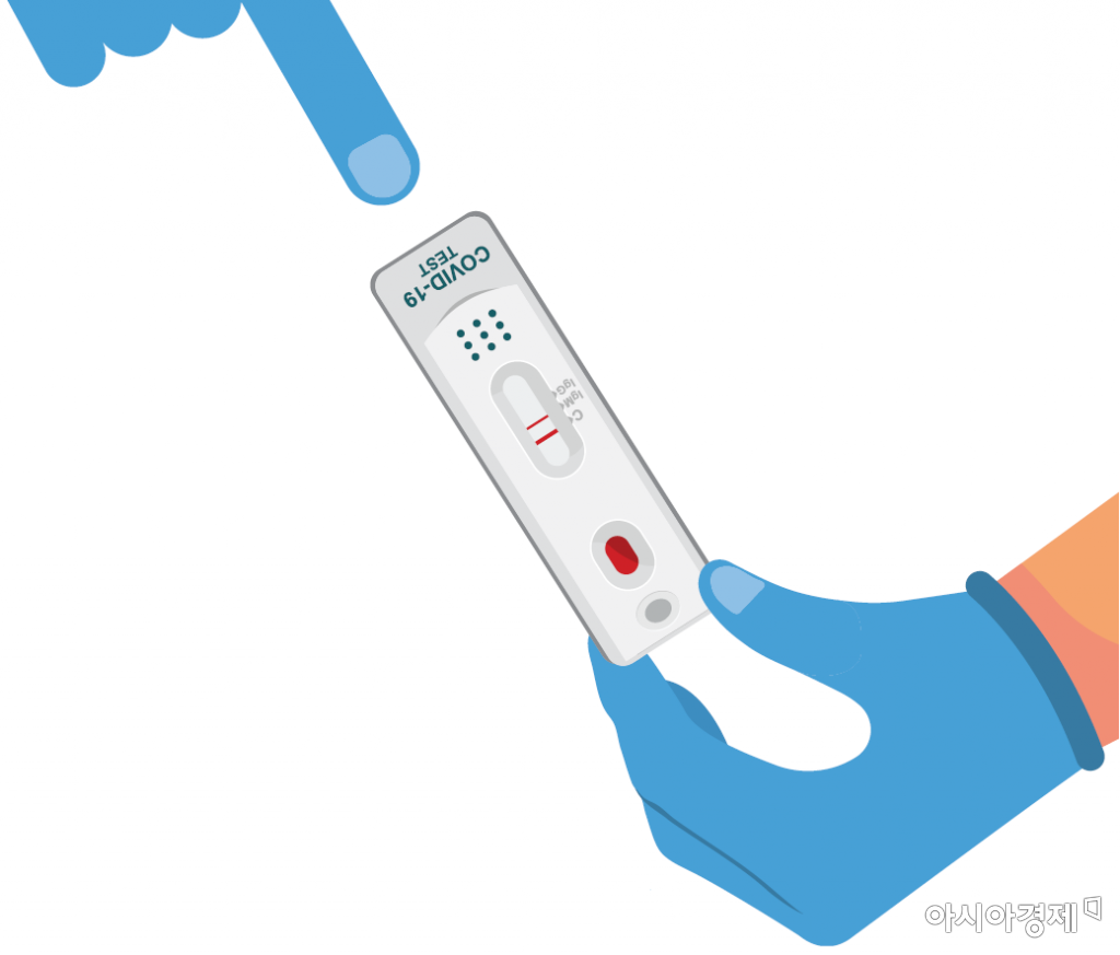 코로나19 자가진단키트에 양성이 표시 돼 있다.