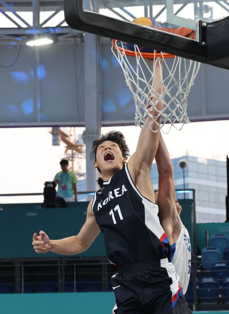 1일 중국 저장성 후저우 더칭 농구코트에서 열린 2022 항저우 아시안게임 3대3 농구 남자 한국과 대만의 준결승전에서 한국 이원석이 슛을 하고 있다. [사진 제공=연합뉴스]
