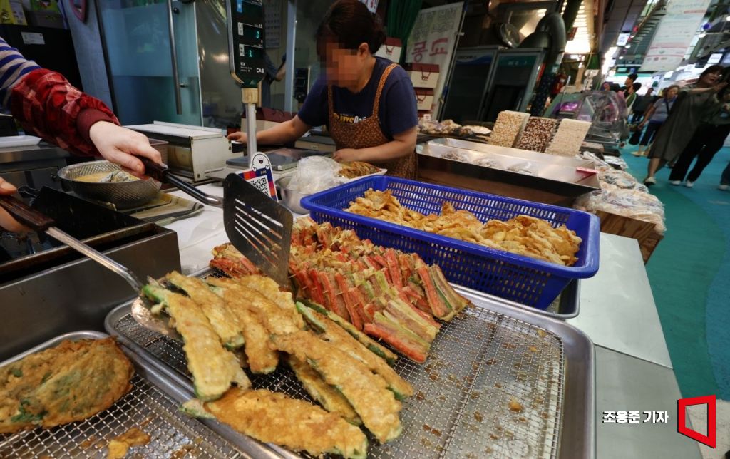 지난 21일 서울 마포구 망원시장의 한 가게에 차례상에 올릴 전이 가득하다. 사진=조용준 기자 jun21@