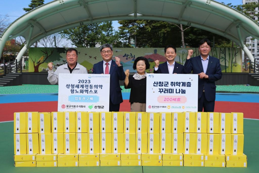 이날 행사는 2023산청세계전통의약항노화엑스포의 성공기원과 농업인, 독거노인, 한부모가정 등 취약계층에 도움을 주고자 마련한 것이다.