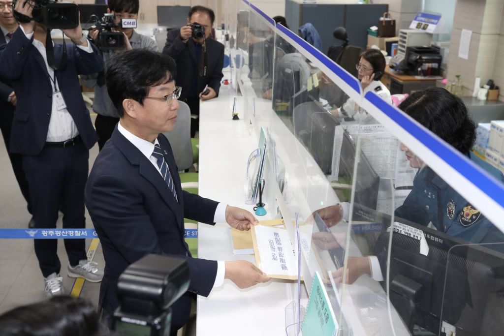 박병규 광산구청장은 10일 오전 광산경찰서를 직접 찾아 시설관리공단 전 본부장 김모씨, 팀장 양모씨 등 4명에 대한 고발장을 제출했다.