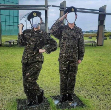 남성과 여성 육군 간부의 복장 차림을 한 이 조형물 2점은 얼굴 위치에 구멍을 내어 도라산 전망대 방문객이 본인 얼굴을 대고 기념 촬영을 할 수 있도록 제작됐다.