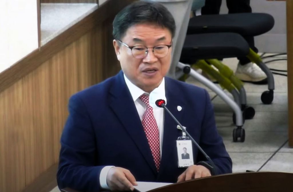 경상국립대 권순기 총장이 국정 감사에서 인사말을 하고 있다.