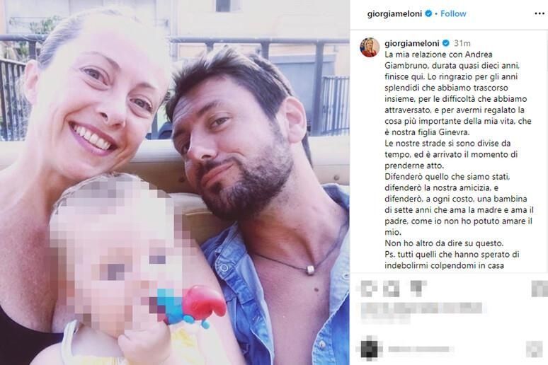 현지 매체는 멜로니 총리가 결별 소식을 전하자 많은 정치인들이 댓글로 격려 메시지를 남기고 있다고 전했다.