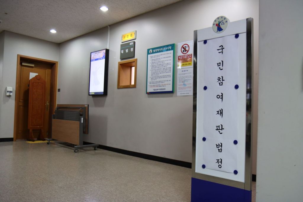 17일 국민참여재판이 열린 서울남부지법 406호 대법정.[사진=서울남부지법]