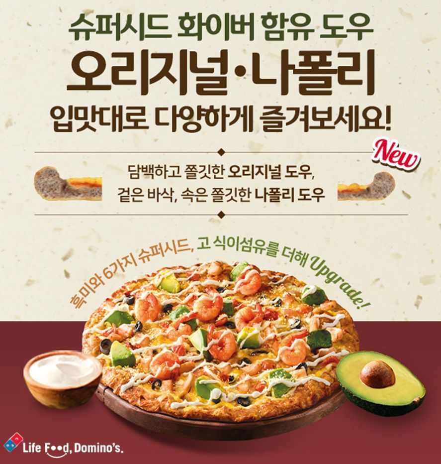 도미노피자는 나폴리 도우에 고식이섬유를 더한 ‘나폴리 슈퍼시드 화이버 함유 도우’를 출시했다고 23일 밝혔다.