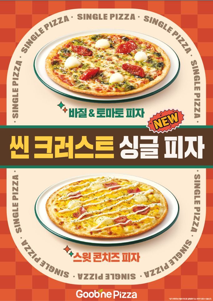싱글 피자는 씬크러스트 도우의 1인용 피자로, 바삭하고 담백한 씬크러스트 도우로 만들어 토핑의 맛이 더욱 돋보인다.