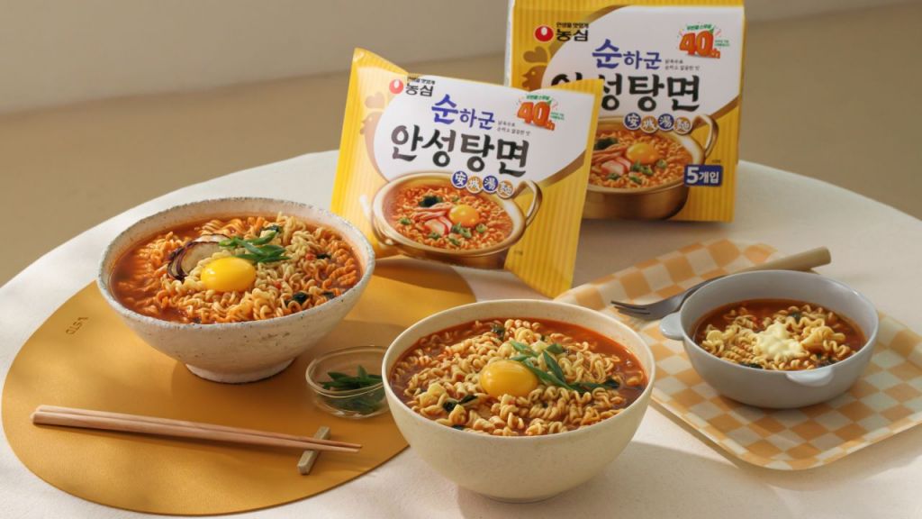 농심이 인기 라면 ‘안성탕면’ 출시 40주년을 기념해 순한 맛을 콘셉트로 한 ‘순하군 안성탕면’을 선보였다.