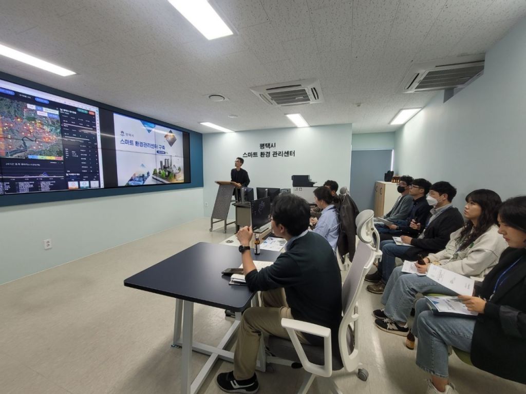 26일 열린 평택시 '스마트 환경관리센터 구축 완료보고회"에서 참석자들이 센터 기능에 대한 설명을 듣고 있다. [사진제공=평택시]