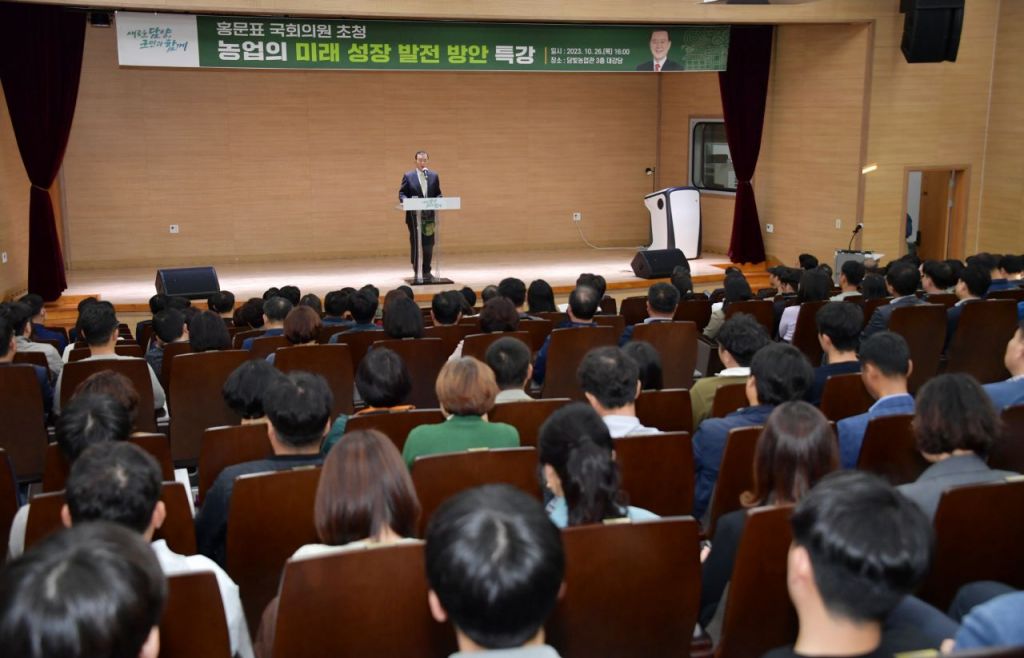 전남 담양군은 26일 담빛농업관 3층 대강당에서 국회 농림축산식품해양수산위원회 위원인 홍문표 국회의원을 초청 '농업의 미래성장 발전방안'이라는 주제로 특강을 진행했다고 27일 밝혔다.
