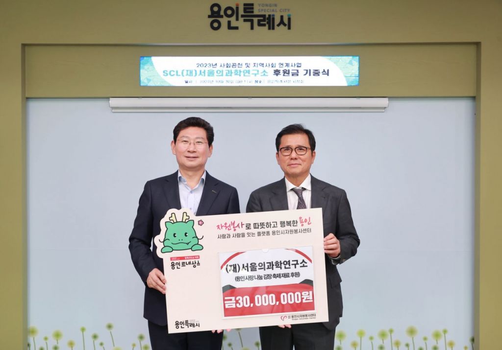 용인시장실에서 열린 이 날 전달식에는 센터 이사장인 이상일 용인시장, 이경률 서울의과학연구소 총괄의료원장 등 관계자들이 참석했다.
