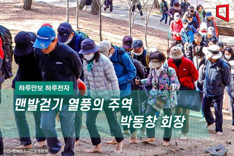 맨발걷기 열풍을 이끈 사람을 꼽자면 단연 1순위가 박동창 맨발걷기국민운동본부 회장이다. 박 회장은 지금도 매주 토요일 오후 강남구 대모산 한솔공원에서 맨발걷기 국민운동본부의 ‘맨발걷기 숲길 힐링스쿨’을 개최한다. 모임은 맨발로 걷는 방법과 효능에 대한 강의와 상담,함께 걷기 등으로 이루어진다.