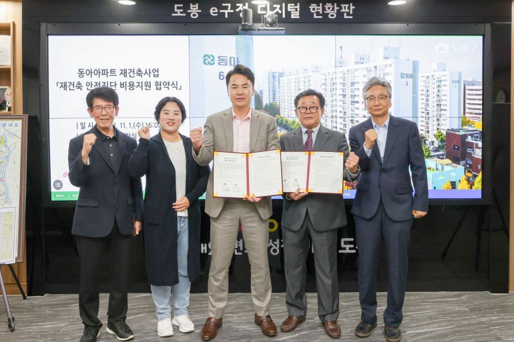 도봉구(구청장 오언석)가 재건축 활성화를 위해 안전진단 비용 지원을 나선 가운데 지난 1일 창동동아아파트와 지역 내 처음으로 안전진단 비용 지원 협약을 체결했다고 밝혔다.