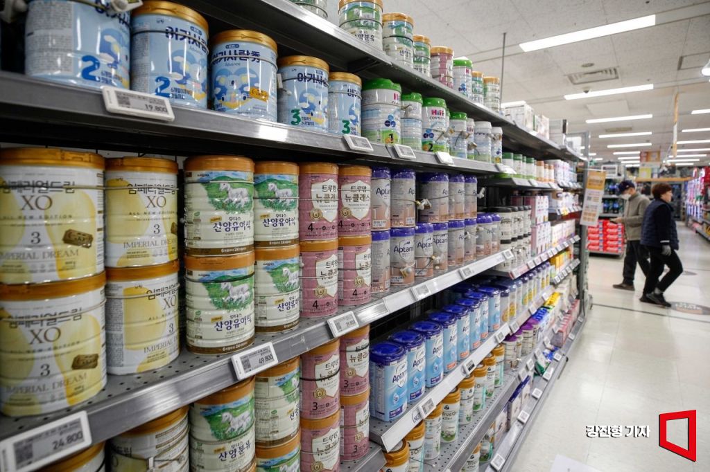 올해 분유, 기저귀 등 육아용품 물가가 크게 오른 것으로 나타났다. 통계청 국가통계포털 자료를 보면, 올해 1월부터 10월까지 영유아 가구가 주로 소비하는 11개 상품 가운데 6개 품목의 물가 상승률이 전체 평균치인 3.7%보다 높은 것으로 조사됐다. 사진은 14일 서울 한 대형마트 분유 진열대.