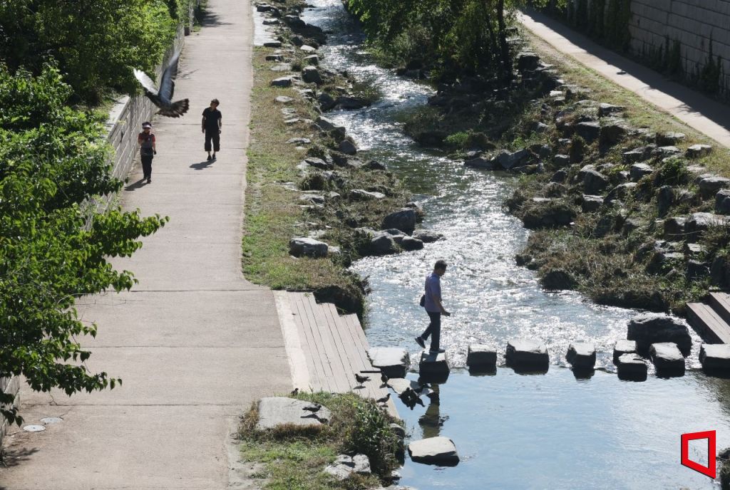 자연과 더불어 걷기 좋은 청계천길을 시민들이 걷고 있다. 사진=허영한 기자 younghan@