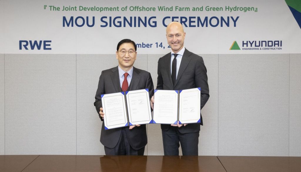 현대건설은 지난 14일 서울 종로구 계동에 위치한 현대건설 본사에서 알더블유이 오프쇼어 윈드(RWE Offshore Wind GmbH, 이하 RWE)와 ‘해상풍력발전 및 그린수소사업 공동개발’에 대한 전략적 업무협약(MOU)을 체결했다고 15일 밝혔다.