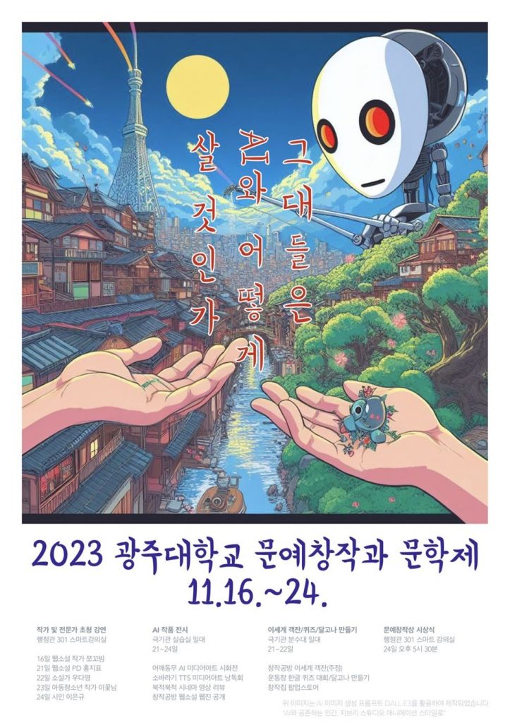 광주대학교 문예창작과가 16일부터 24일까지 '그대들은 AI와 어떻게 살 것인가'라는 테마로 문학제를 개최한다고 15일 밝혔다.