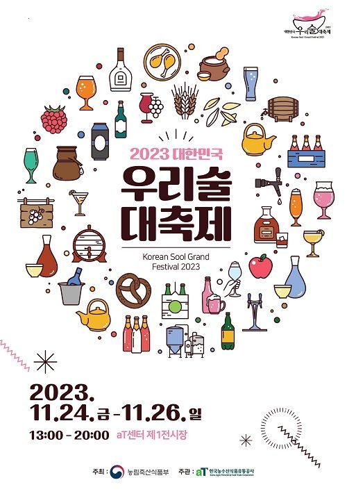 오는 24일부터 26일까지 농림축산식품부와 한국농수산식품유통공사가 주최하는 국내 최대 전통주 행사인 ‘대한민국 우리술 대축제'가 개최한다고 밝혔다. 이번이 13회째 행사는 누룩 만들기, 막걸리 양조, 스탠드업 코미디 등 다채로운 활동이 진행된다.