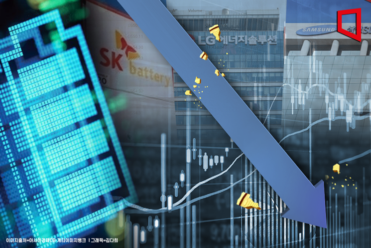 22일 한국거래소에 따르면 지난 7월 60만원을 넘나들던 LG에너지솔루션 주가는 전날 종가 기준 44만7000원까지 떨어졌다. 약 30% 하락한 수준이다. 삼성SDI 역시 같은 기간 30%가량 떨어졌다. 이차전지 양극재 기업 에코프로비엠, 포스코퓨처엠 등은 50% 넘는 하락세를 보였다.