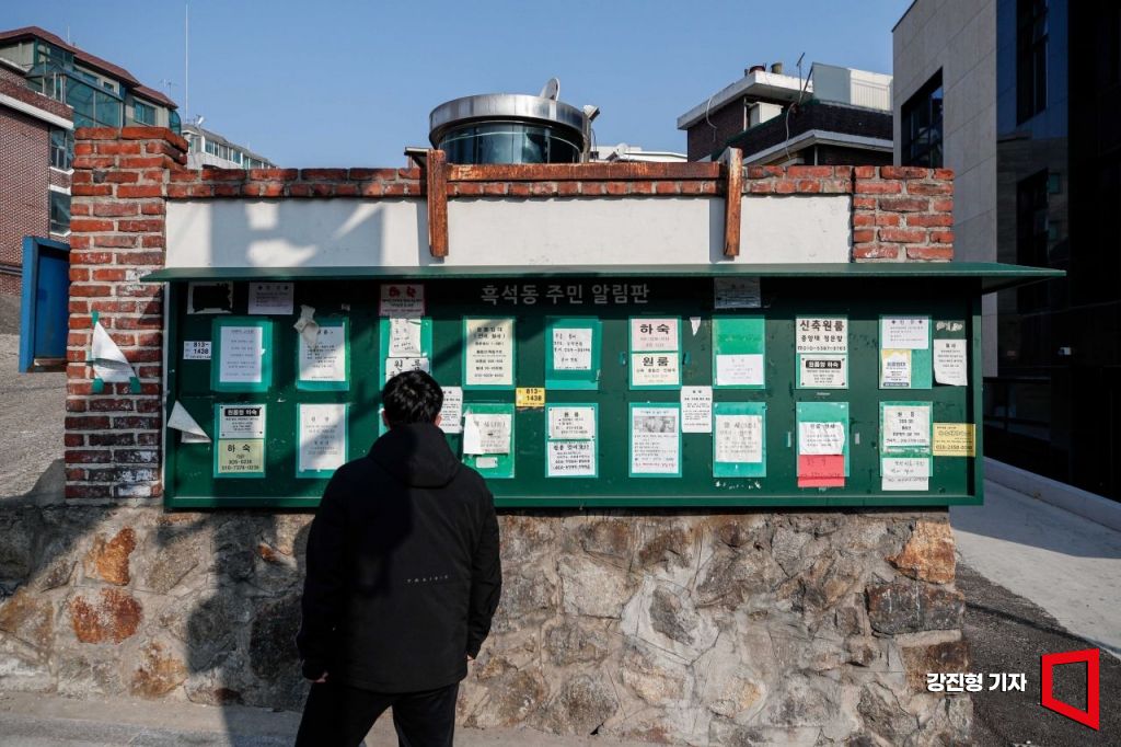 고물가 속에 대학가 원룸 임대료까지 오르면서 하숙집과 기숙사 등 조금 더 저렴한 거주 시설을 찾는 학생들이 늘고 있는 가운데 지난 2월 서울 동작구 중앙대학교 인근 주민게시판에 하숙 관련 전단지가 붙어 있다. 사진=강진형 기자aymsdream@
