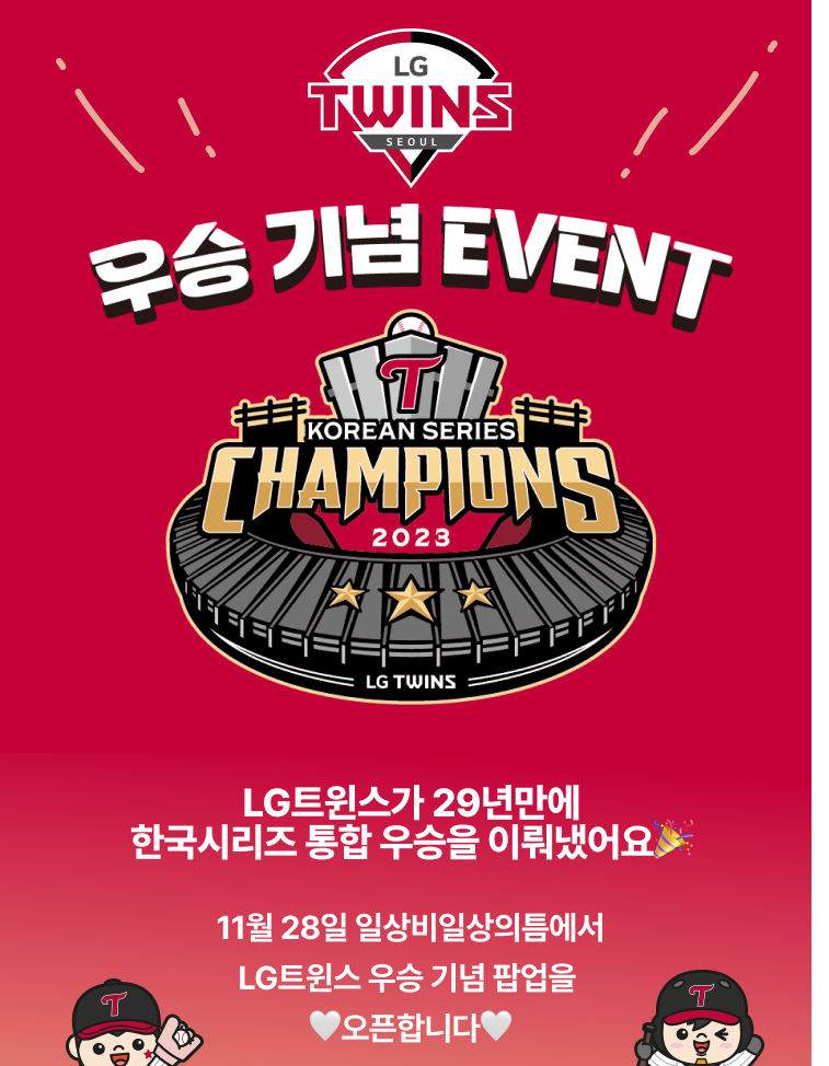 김다림 LG유플러스 마케팅전략담당은 “LG트윈스의 우승을 팬 분들과 함께 기념하기 위해 팝업, 이벤트, 팬사인회 등 다양한 활동을 마련하게 됐다”며 “기존 팬뿐만 아니라 더 많은 고객이 틈에 방문해 LG트윈스의 매력을 느낄 수 있길 바란다”고 했다.