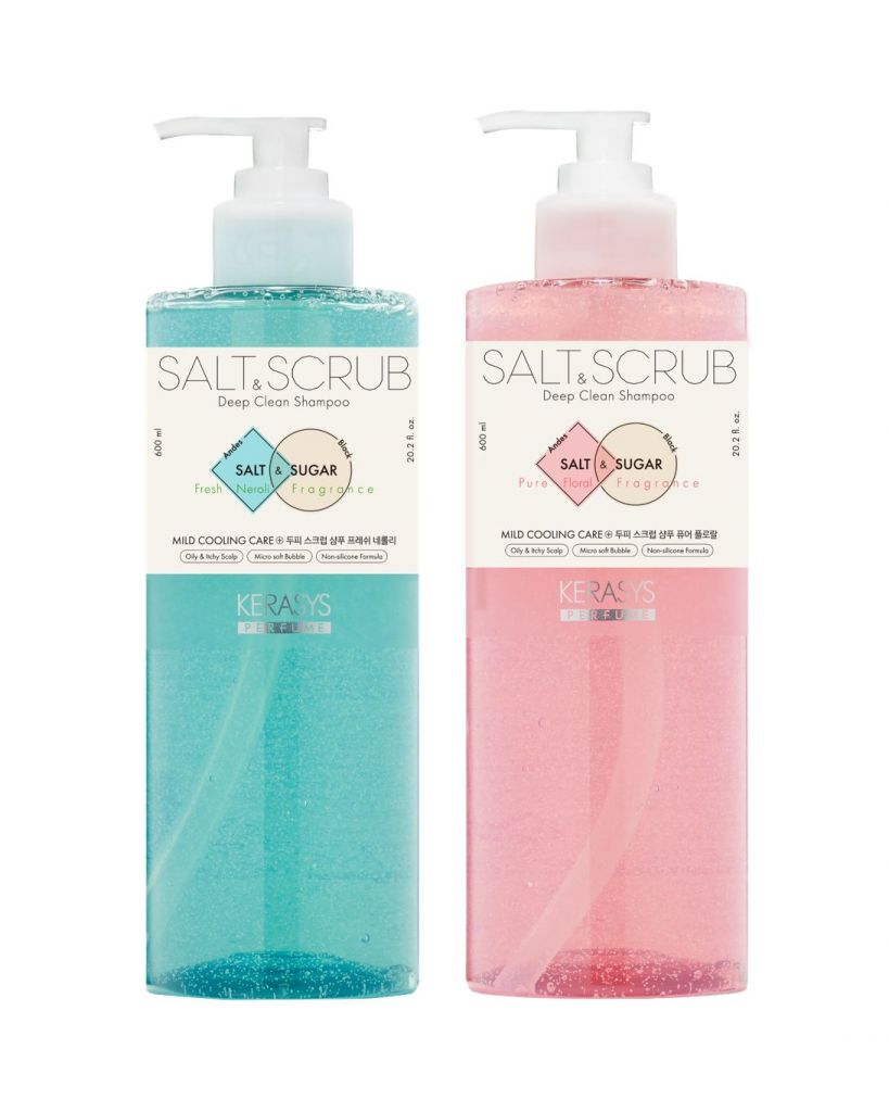 애경산업의 케라시스 두피 스크럽 소금 샴푸 2종. [사진제공=애경산업]