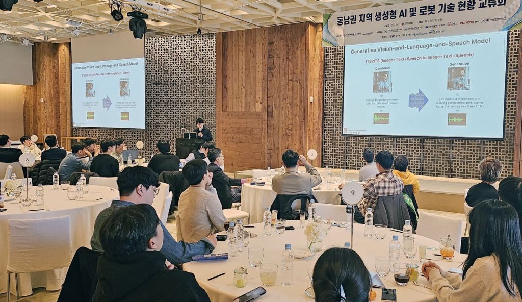 ‘동남권 지역 생성형 인공지능(AI)·로봇 기술 현황 교류회’가 진행 중이다.
