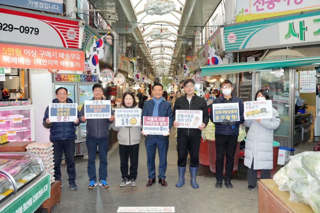 12월 4일 100억 원 규모의 ‘성북사랑상품권’을 발행을 앞두고 이승로 성북구청장과 성북구 돈암전통시장 상인들이 지역사랑상품권에 대한 정부의 관심과 예산 확대를 요구하는 메시지를 전했다.
