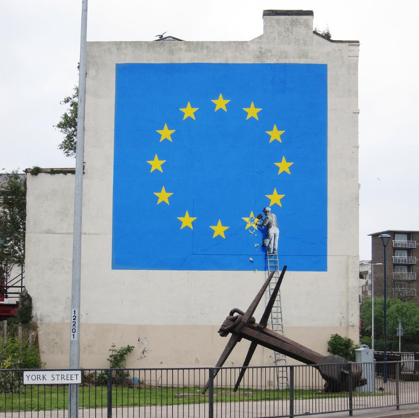 사다리에 오른 작업자가 12개의 별로 구성된 EU 깃발에서 별 하나를 끌로 파내는 모습을 담았다. 브렉시트(Brexit)를 풍자한 것이다. 이후 익명으로 활동하는 영국 화가 뱅크시는 대리인을 통해 이 그림은 자기 작품이라고 인정했다.
