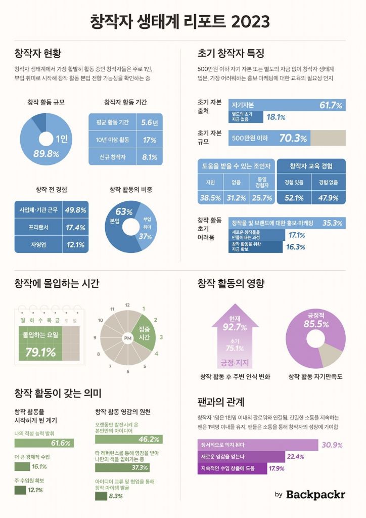 창작자 생태계 리포트는 아이디어스, 텀블벅, 스테디오에서 활동하는 입점 창작자 7만여 명의 행태를 분석하고 활동 지수 상위 10% 창작자 1000명을 대상으로 실시한 설문 조사를 바탕으로 제작됐으며 매년 12월 백패커 공식 홈페이지에서 정기적으로 발행될 예정이다.