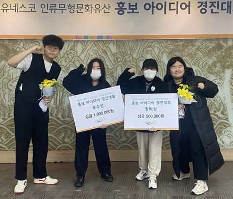 유네스코 인류무형문화유산 홍보 아이디어 경진대회에 출전해 수상한 동서대 웹툰학과 학생들.