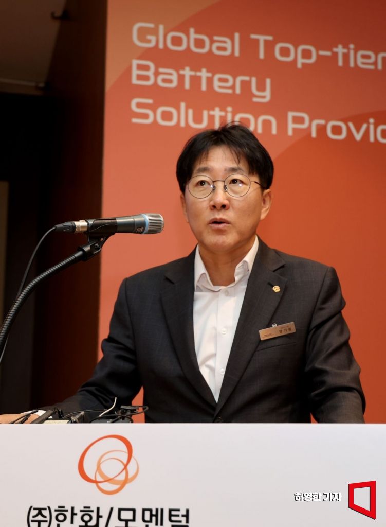 양기원 ㈜한화 모멘텀 대표이사는 "오늘 행사는 한화 모멘텀의 이차전지 제조 솔루션 사업내용을 설명하고 회사 비전을 선포하는 뜻깊은 자리"라며 "이차전지 산업의 전 공정을 포괄하는 토탈 솔루션 프로바이더로서 우리나라 이차전지 산업경쟁력 확보에 이바지하겠다"고 했다.
