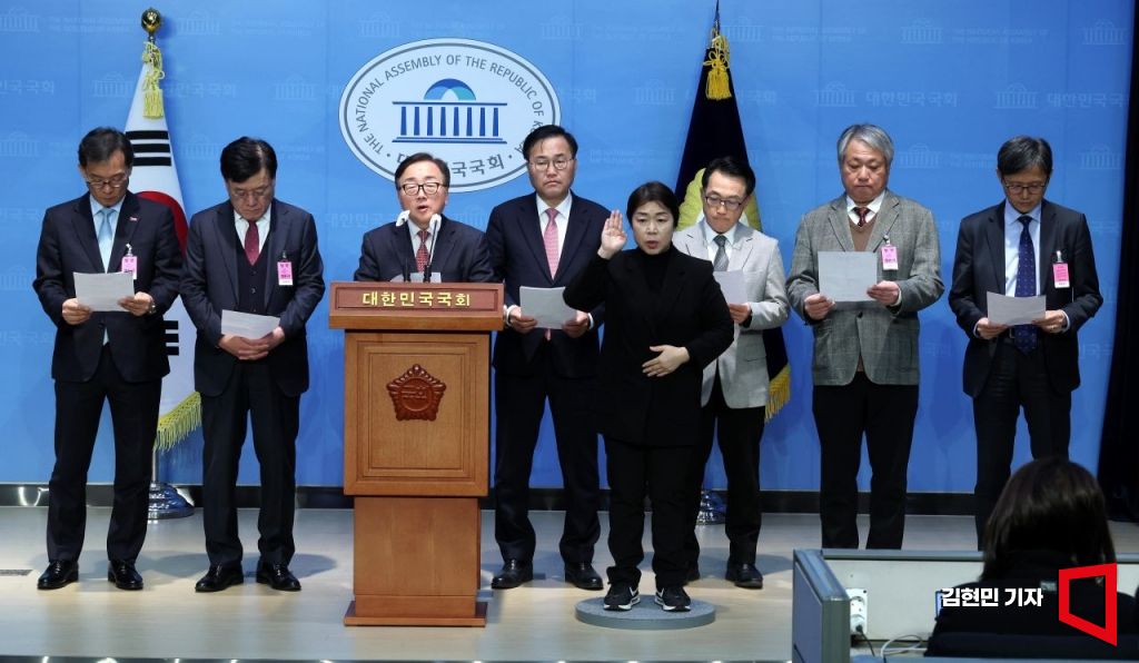 이동근 한국경영자총협회 부회장 등 경제6단체 부회장단이 4일 국회 소통관에서 노조법 개정안 폐기 촉구 공동성명을 발표하고 있다. 사진=김현민 기자 kimhyun81@