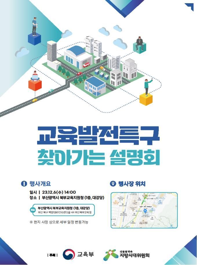 6일 오후 2시 부산북부교육지원청 대강당에서 교육부 주관 ‘교육발전특구 찾아가는 설명회’가 열린다.