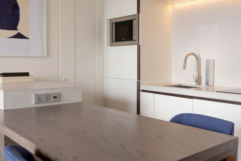 이번에 호텔 객실에 설치된 노블 빌트인 정수기는 정수기 본체가 싱크대 하부에 설치되는 빌트인 타입 제품으로, 공간 활용성은 물론 고급스러운 호텔 공간과도 조화를 이룬다.