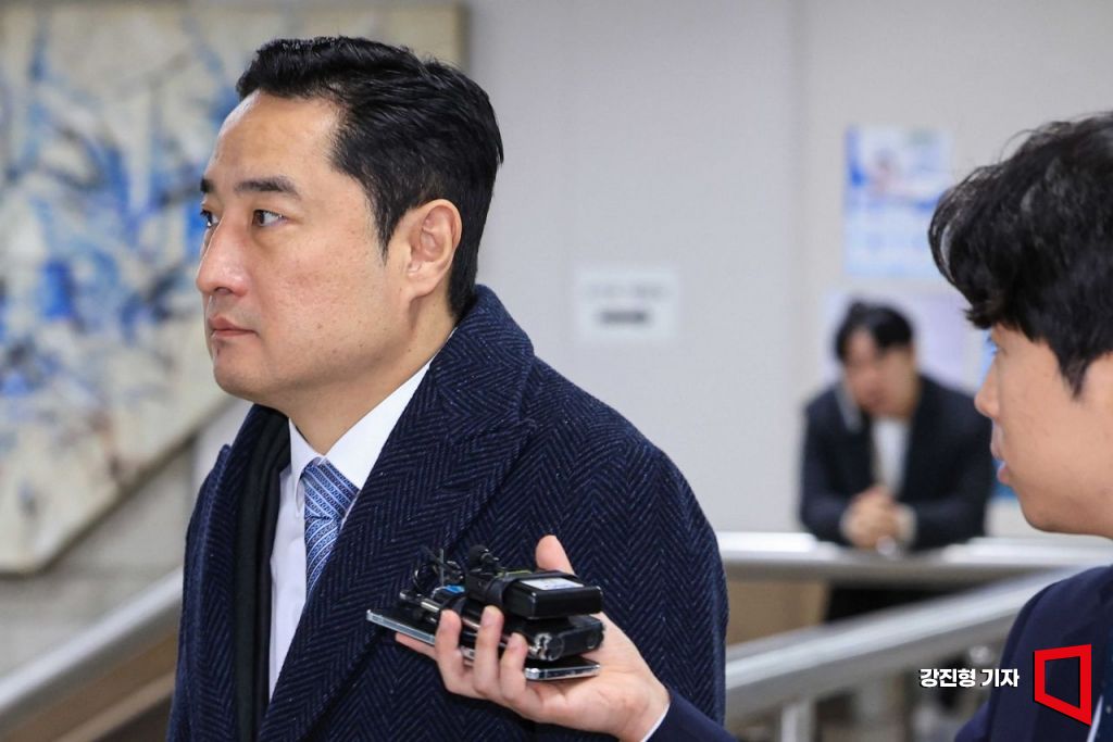 '도도맘' 김미나 씨에게 허위 고소를 종용한 혐의로 재판에 넘겨진 강용석 변호사가 6일 서울 서초구 서울중앙지방법원에서 열린 1심 선고 공판에 출석하고 있다.