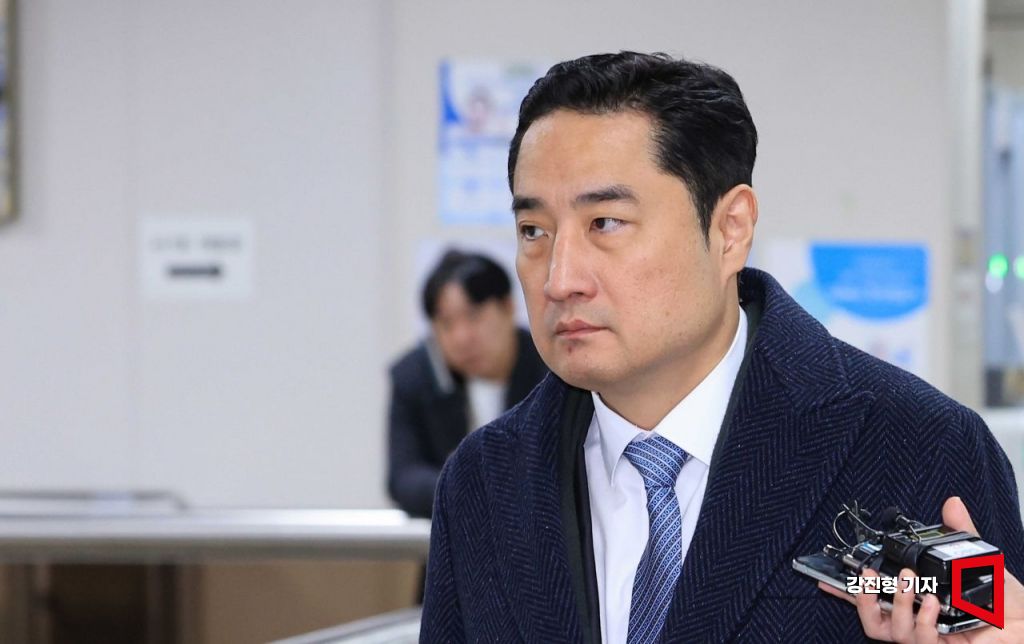 '도도맘' 김미나 씨에게 허위 고소를 종용한 혐의로 재판에 넘겨진 강용석 변호사가 6일 서울 서초구 서울중앙지방법원에서 열린 1심 선고 공판에 출석하고 있다.