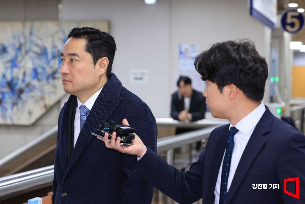 '도도맘' 김미나 씨에게 허위 고소를 종용한 혐의로 재판에 넘겨진 강용석 변호사가 6일 서울 서초구 서울중앙지방법원에서 열린 1심 선고 공판에 출석하고 있다.