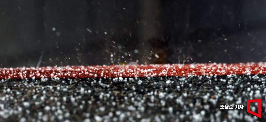 서울을 비롯한 수도권에 약한비가 내릴것으로 예보된 6일 오후 서울 강남 도심에 갑자기 굵은 우박이 쏟아지고 있다. 사진=조용준 기자 jun21@