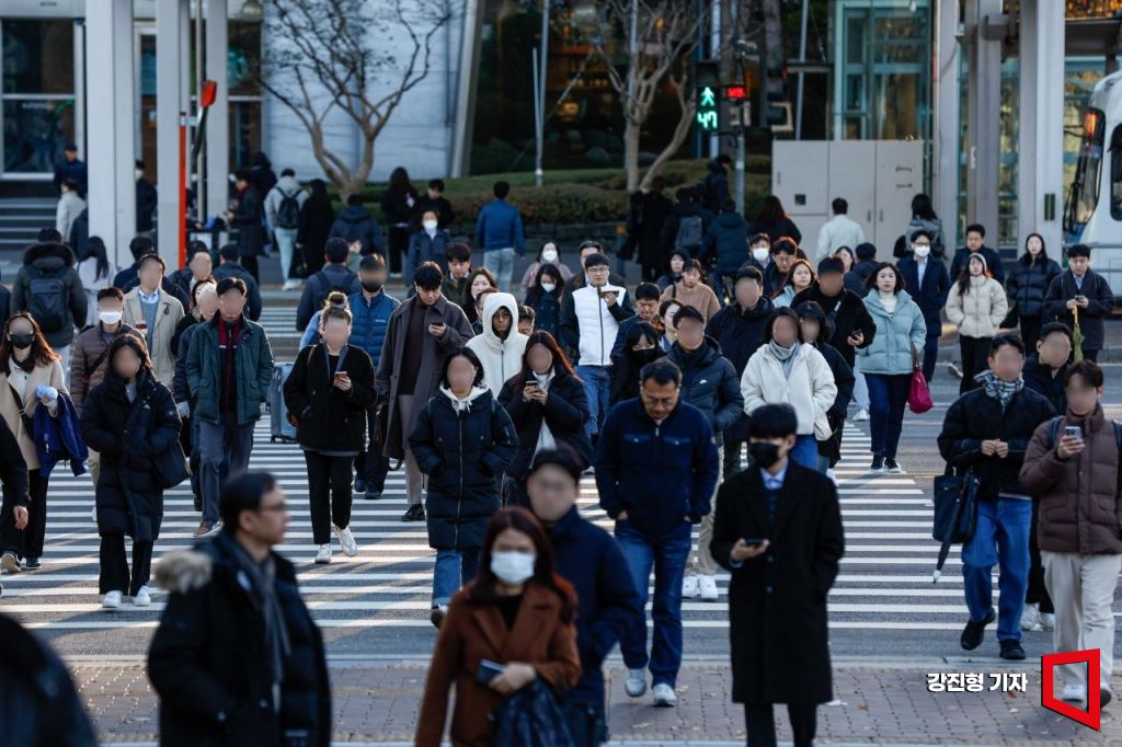 비가 그치며 서울 최저기온이 영하 1도까지 떨어진 17일 서울 여의대로에서 시민들이 두꺼운 외투를 입고 이동하고 있다. 사진=강진형 기자aymsdream@