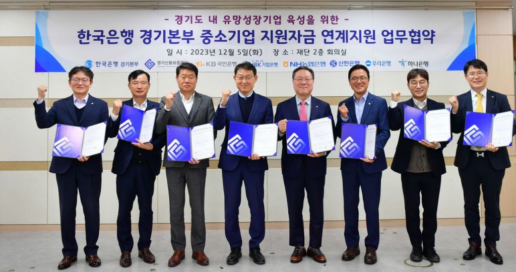 경기신보는 지난 5일 수원 광교 본점 2층 회의실에서 한국은행 경기본부 및 6개 은행과 함께 ‘경기도 유망성장기업 육성을 위한 한국은행 경기본부 중소기업 지원자금(C2자금) 연계지원 업무협약’을 체결했다고 7일 밝혔다.