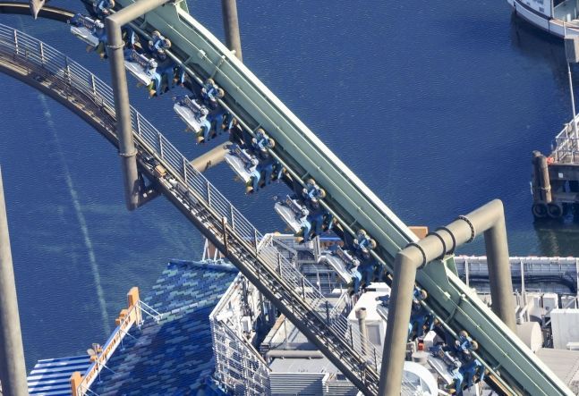 14일 NHK 등 현지 매체에 따르면 이날 오전 11시께 롤러코스터 '더 플라잉 다이노서'가 주행 중 정상 부근인 약 40m 지점에서 긴급 정지했다.