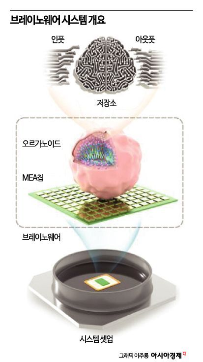 최근 과학학술지 네이처에 실험실에서 배양한 뇌 오르가노이드(미니 장기 조직)과 전자 회로로 구성된 바이오컴퓨터에 대한 논문이 실렸다. ‘브레이노웨어(Brainoware)’라고 불리는 이 시스템은 인간의 음성을 인식했다.