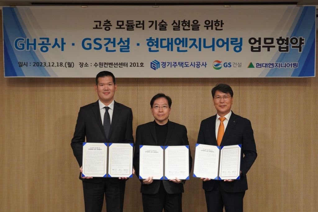 경기주택도시공사(GH)가 현대엔지니어링, GS건설과 고층 모듈러 기술 실현을 위해 손을 잡았다.