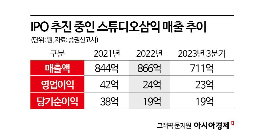 스튜디오삼익은 지난해 매출액 866억원, 영업이익 24억원을 기록했다. 매출액은 2.5% 늘었으나 영업이익은 43.4% 감소했다. 올해 3분기까지 매출액 711억원, 영업이익 23억원을 기록했다. 전년 동기 대비 각각 10.3%, 12.8% 늘었다.