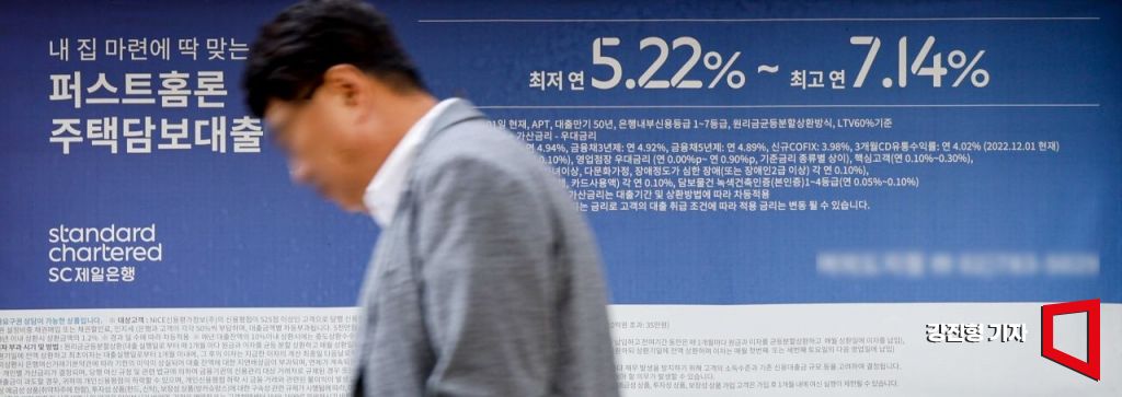 최근 국내 시장금리와 은행권 대출금리가 빠르게 상승하고 있는 23일 서울 한 시중은행 외벽에 대출 금리가 적힌 현수막이 걸려 있다. 사진=강진형 기자aymsdream@